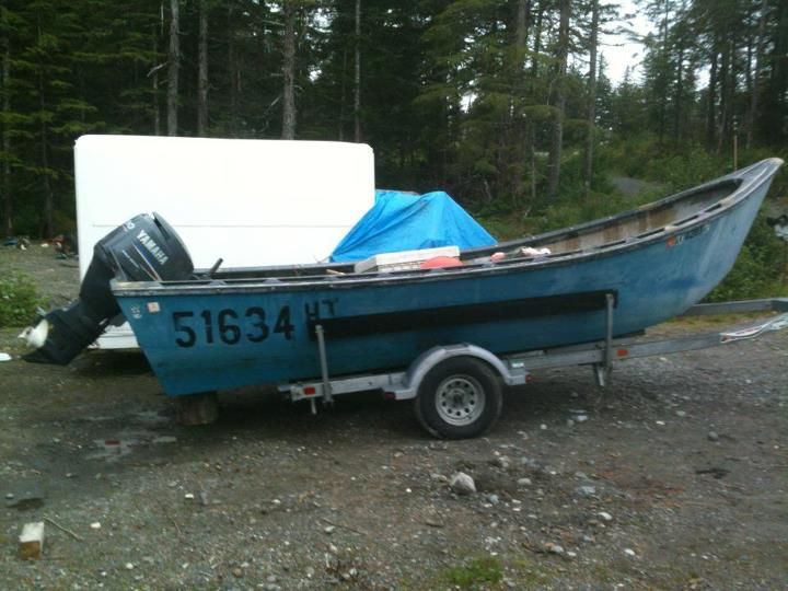 22 ft. Fiberglass skiff for sale. Comes with a 90 hp. Yamaha 4 stroke with approximately 250 hrs. on it, and a galvanized trailer. The hull is very heavily constructed and is built dory style, but with a flat bottom for easier access to beaches or use with a jet pump. Can very easily be rigged as a nice little handtroller, this one has done it before. Comes with an aluminum console, new wire harness, and spare new tilt motor. Located in Yakutat, but can easily be put on a ferry or barge to wherever. Price-$15,000. 907-784-3307, or PM here.